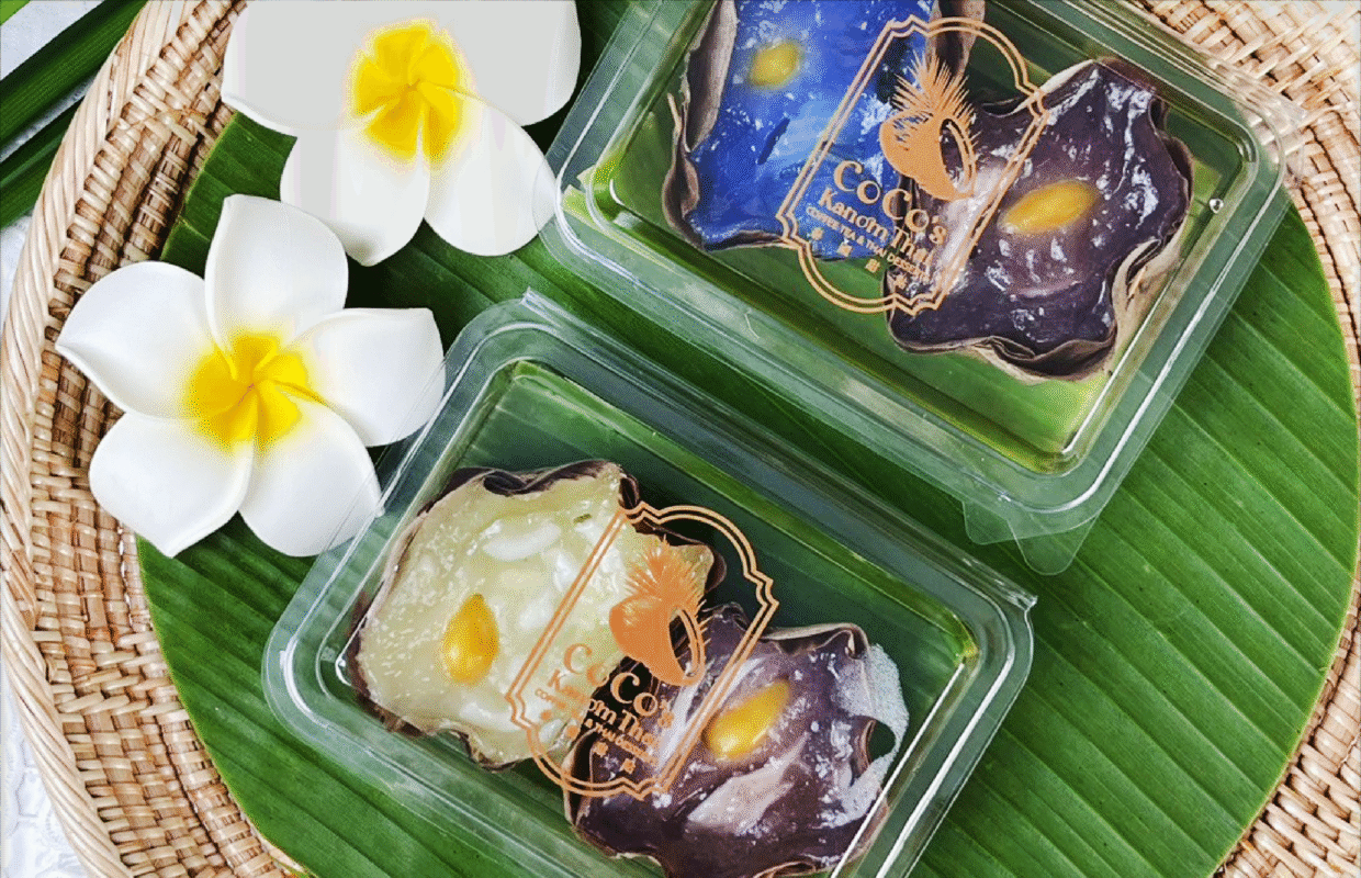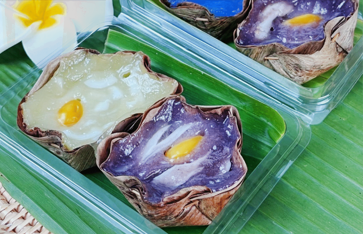 is a traditional Thai dessert influenced by Chinese culture, commonly made and offered to deities during the Chinese New Year for good luck. It is made from glutinous rice flour, sugar, and coconut milk, then steamed in small banana leaf or palm leaf cups. The sweet and sticky texture symbolizes unity, strong family bonds, and lasting prosperity.