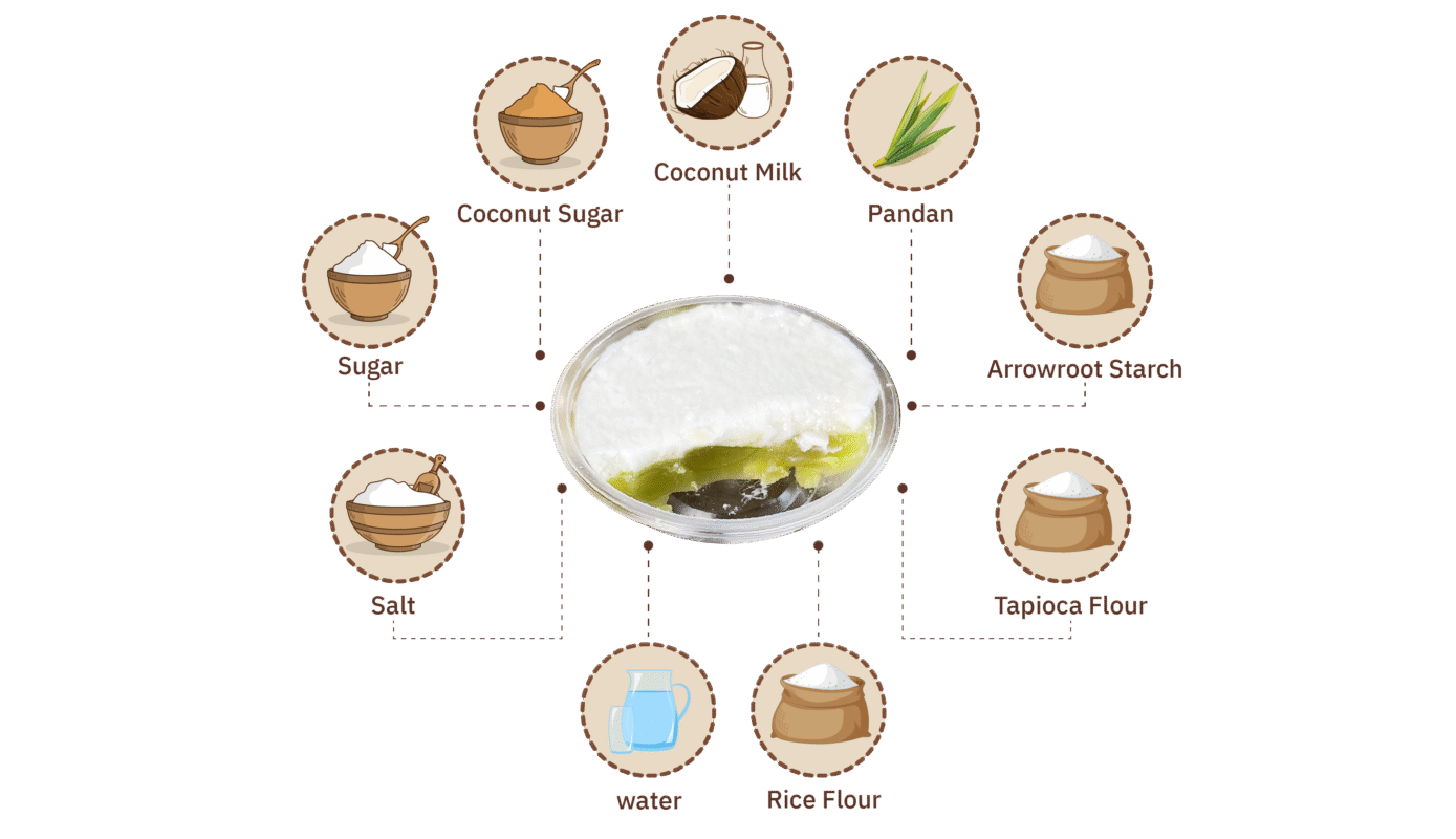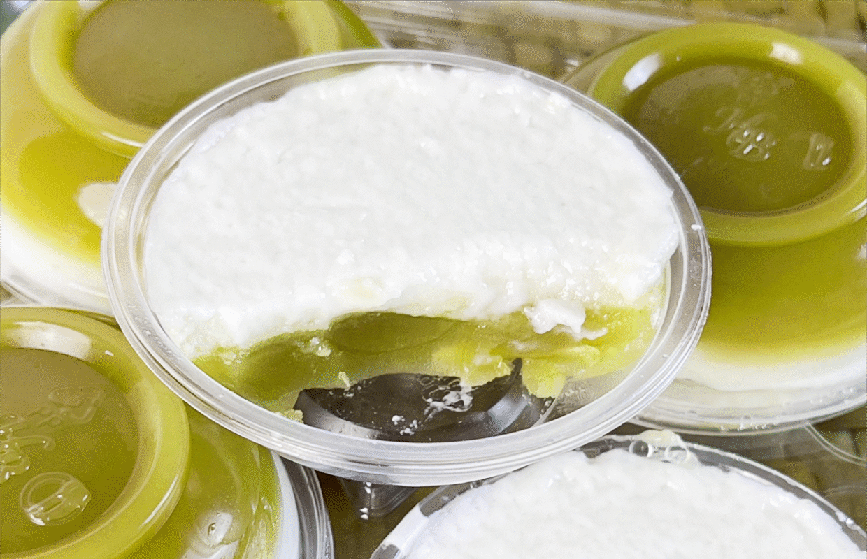 Pandan Thai Custard Cups: Our shop carefully selects premium ingredients, including fresh pandan leaves, coconut milk, palm sugar, and high-quality flour. The dessert clearly features two distinct layers: a smooth, creamy white coconut milk topping with a slightly salty taste, and a soft, chewy light green pandan-flavored base. When enjoying together, you’ll experience a perfectly balanced combination of sweet, rich, and savory flavors.
