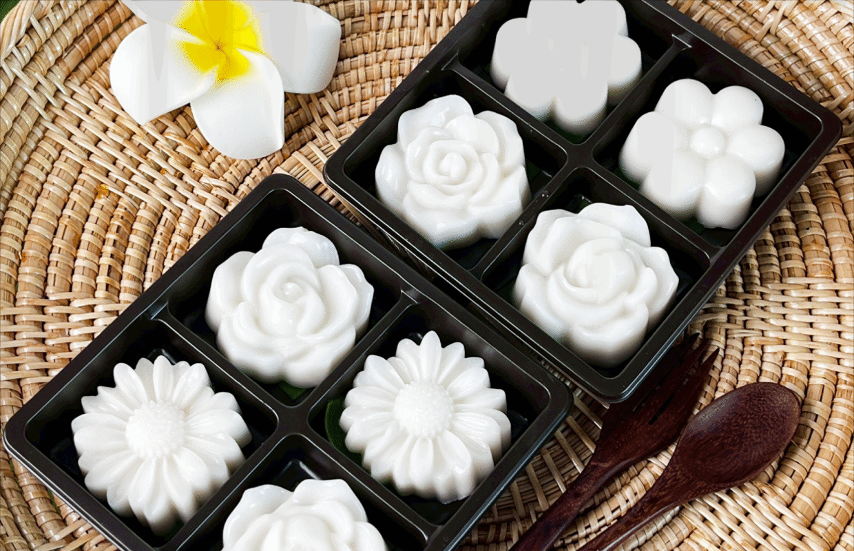 Upon tasting, one will delight in the soft, bouncy texture of the clear layer infused with the sweet scent of young coconut, perfectly harmonized with the creamy white coconut layer that is rich, slightly salty, and gently sweet. Together, they offer a refreshing, smooth sensation that lingers with the natural fragrance of coconut in every bite.